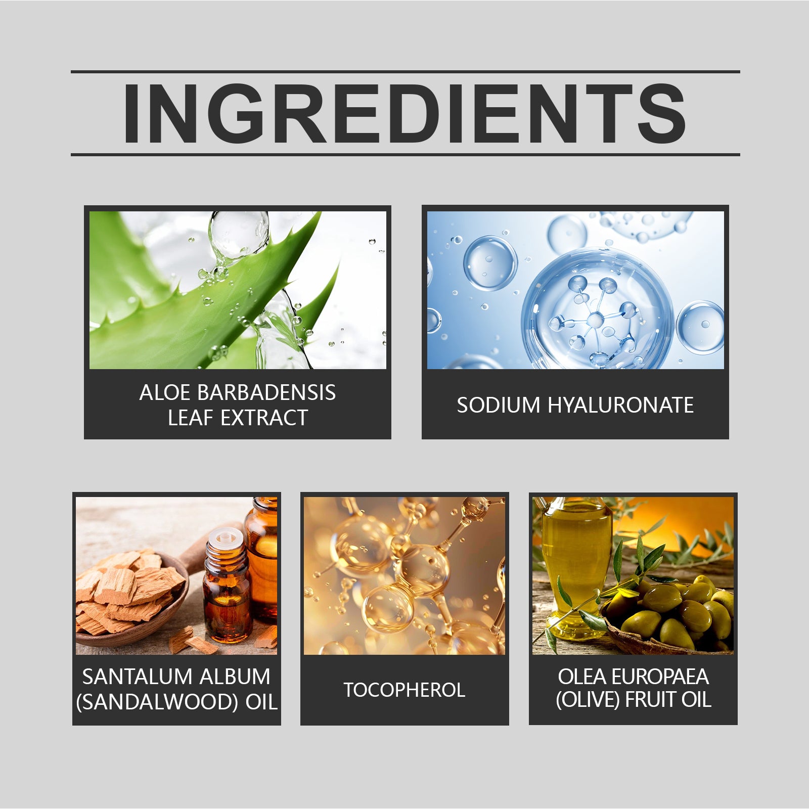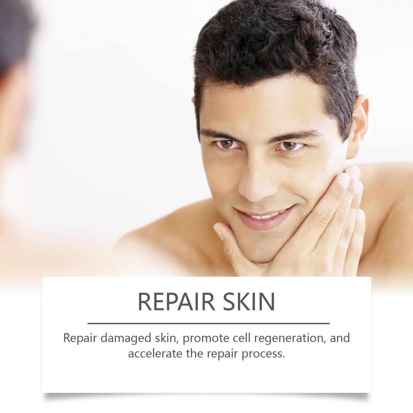 Our aftershave soothing spray contains tocopherol (vitamin E), olive oil, sandalwood oil. It can repair damaged skin, promote cell regeneration and speed up the repair process. Its application method is very simple: after shaving, apply the product, evenly spray on the shaving area, gently massage until absorbed. It also provides long-lasting moisture and keeps the skin hydrated.