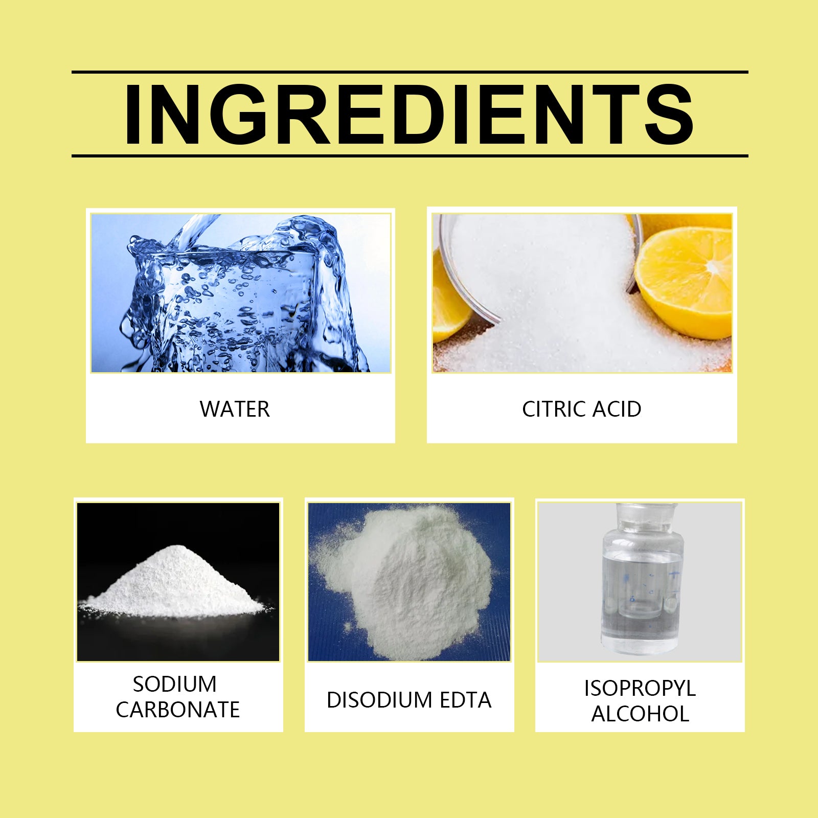 Our fly floor cleaner contains sodium carbonate, disodium EDTA and isopropyl alcohol. It can dilute the appropriate amount of detergent to a bucket of water according to the area of the floor, bathroom or kitchen surface, gently wipe the diluted detergent on the floor or surface, and let the clean surface dry naturally. And can effectively clean the hard surface around the home, easily remove light grease, footprints and stubborn dirt.