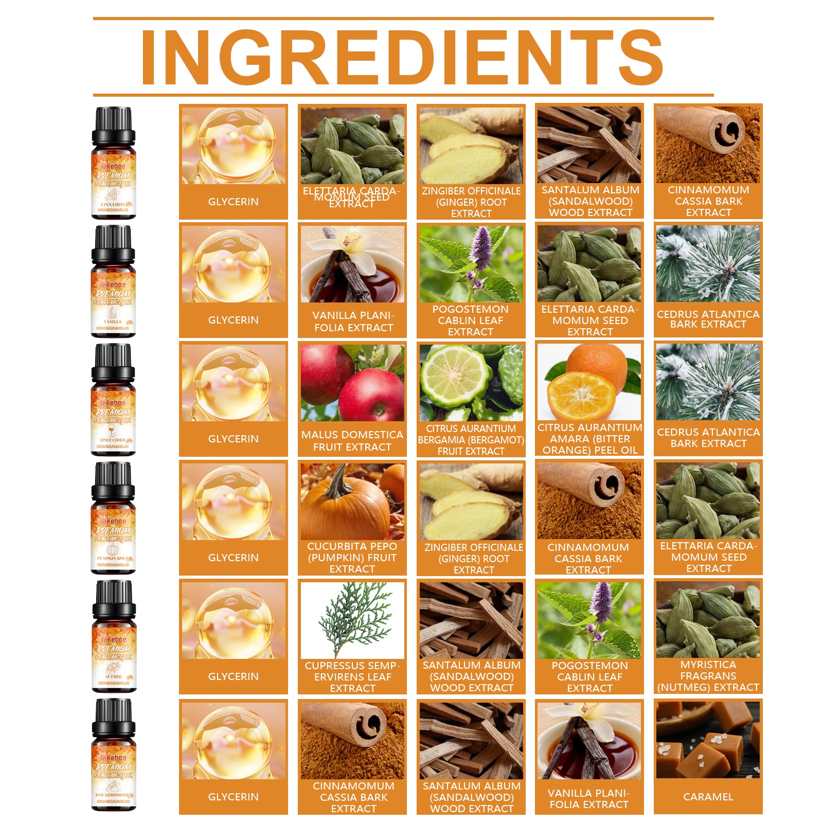 Our Fall essential oil set contains glycerin, cinnamon extract, sandalwood extract. It can relieve physical and mental fatigue and enhance happiness. The fresh wood fragrance enhances the freshness of the indoor air. Its use is very simple: 1. Diffuser and humidifier: Drop an appropriate amount of essential oil into the device to spread the aroma. 2. Sprayer: Mix essential oil with water and spray on air or fabric; 3. Soap or candle making: Essential oils are added to soap or wax bases to make scented products. Light citrus flavor, refreshing, no chemical additives, mild and safe. Suitable for long-term use. The soft scent makes people feel fresh. The distinctive woody aroma helps to create a stable and relaxing environment.