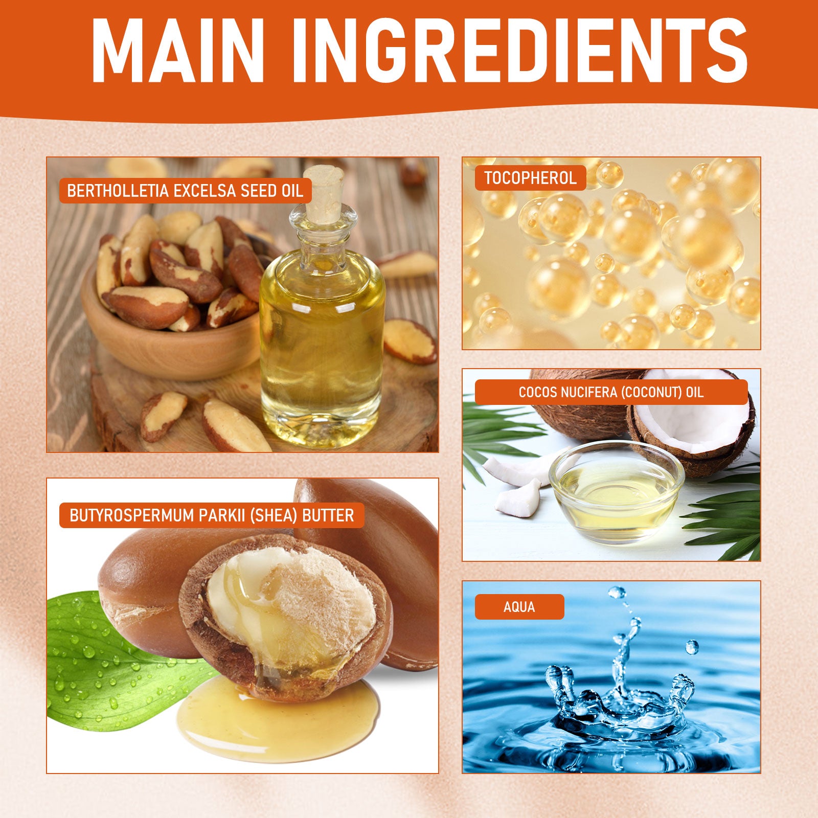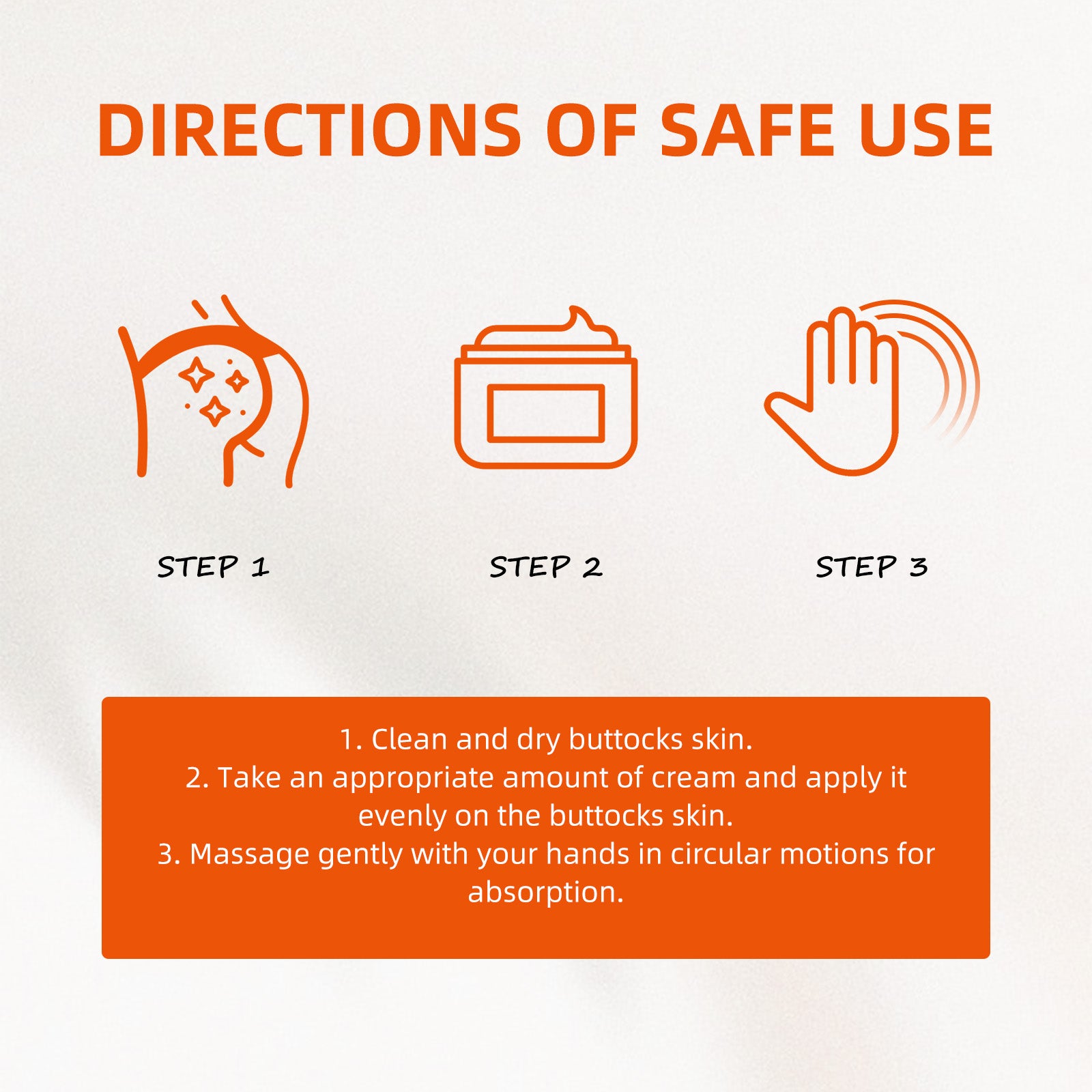 Our Bum Bum Cream contains Tocopherol, Bertholletia Excelsa Seed Oil, Buty-Rospermum Parki (Shea)Butter. It can reduce local cellulite, help build a slim figure, make the bottom line more beautiful, help slow down skin sagging, and make the skin surface smoother and firmer. Its use method is very simple: clean and dry the buttock skin, apply appropriate amount of product evenly on the buttock skin, gently massage with the hand in a circular motion to absorb. It can help improve the firmness of the skin on the buttocks, making it look stronger and more elastic.