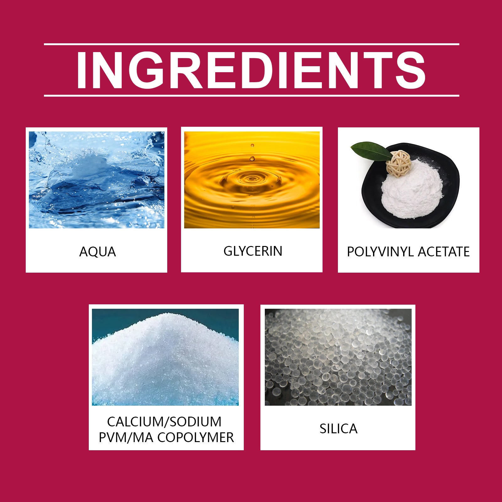 Our denture adhesives contain glycerin, polyvinyl acetate, calcium/sodium PVM/MA copolymers. It can provide lasting fixation for up to 4 days, ensuring tooth stability and reducing the need for daily adjustments. The thermoplastic formulation provides a soft fit, reduces wear and discomfort, and improves overall wearing comfort. Its use is simple: Squeeze this to keep your mouth clean and dry for a few seconds, then squeeze it against your gums for a few seconds and wait for the teeth to stabilize. Clean your mouth and wear dentures. And can reduce potential health risks, suitable for long-term use.