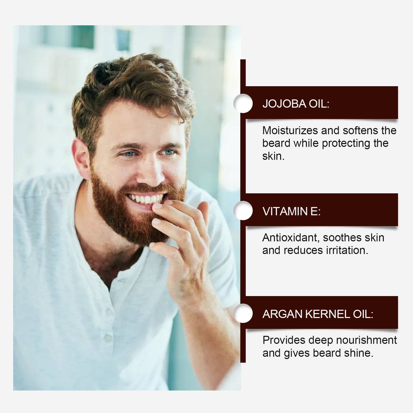 Our men's beard care balm contains acanth kernel oil, shea butter and coconut oil. It soothes the skin under the beard and reduces irritation and dryness. The way to use it is very simple: clean and dry the beard, take the right amount of skin cream in the palm of the hand rub evenly, then apply the beard and the root of the beard, gently massage the beard with the hand, let it be absorbed. And can deeply nourish whiskers, repair dry hair, and bring softness and shine.