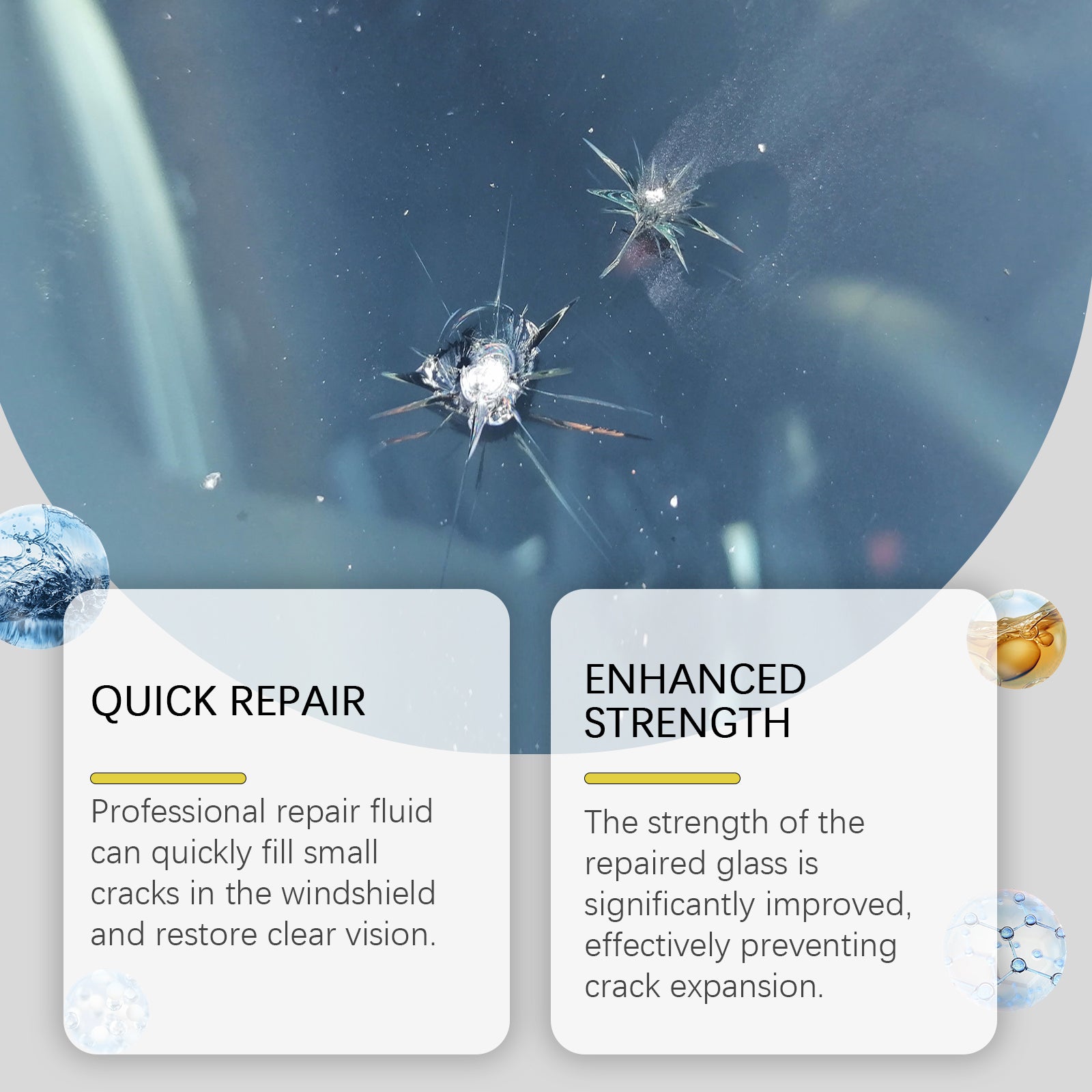 Our three-piece set for car windshield care is carefully formulated with propylene monomer and phenyl dimethyl ether. Designed specifically for quickly filling small cracks on the windshield and restoring a clear view. The usage method is extremely convenient: Clean and dry the damaged area of the windshield. Drop the windshield repair liquid onto the crack of the glass. Stick the cured film and let it cure quickly in the sun for 5 minutes. Finally, use a blade to clean the remaining resin on the surface. And it can significantly enhance the strength of the glass and effectively prevent crack propagation.