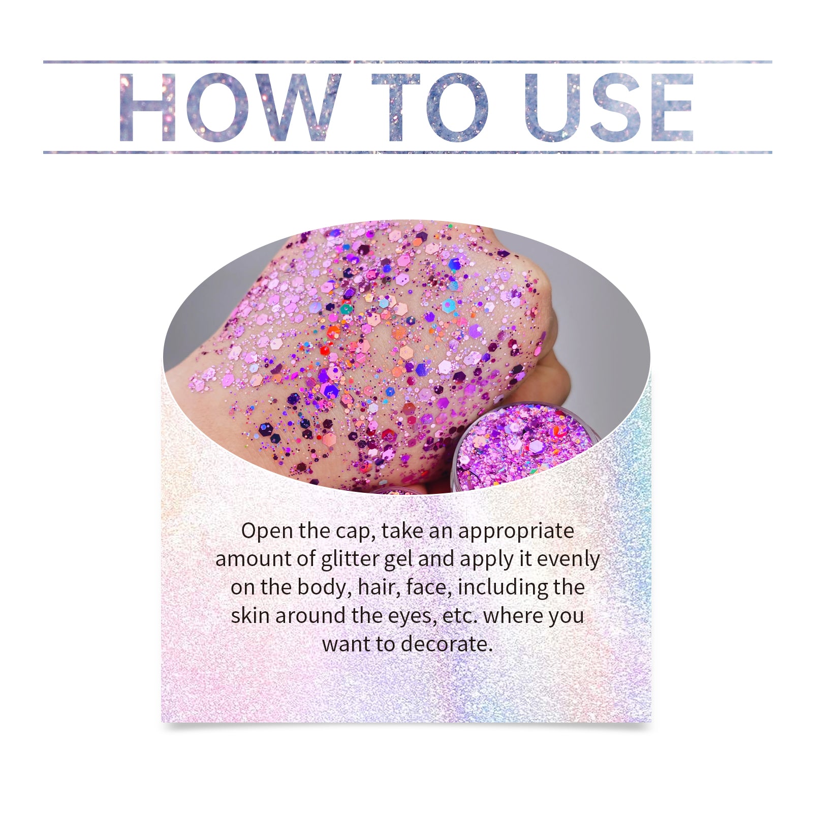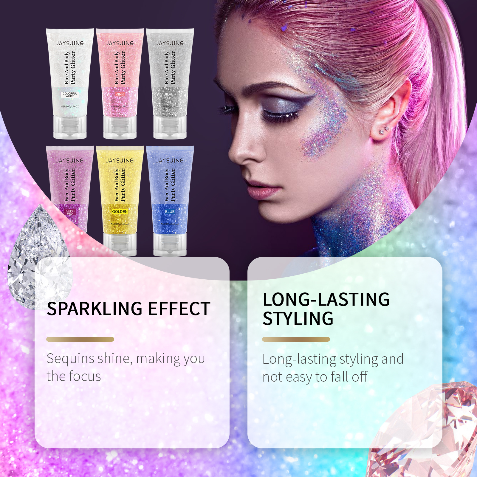 Jaysuing Glitter Glitter Gel, Natural Stereoscopic Body High Glitter Party Rave Multi-Color Option