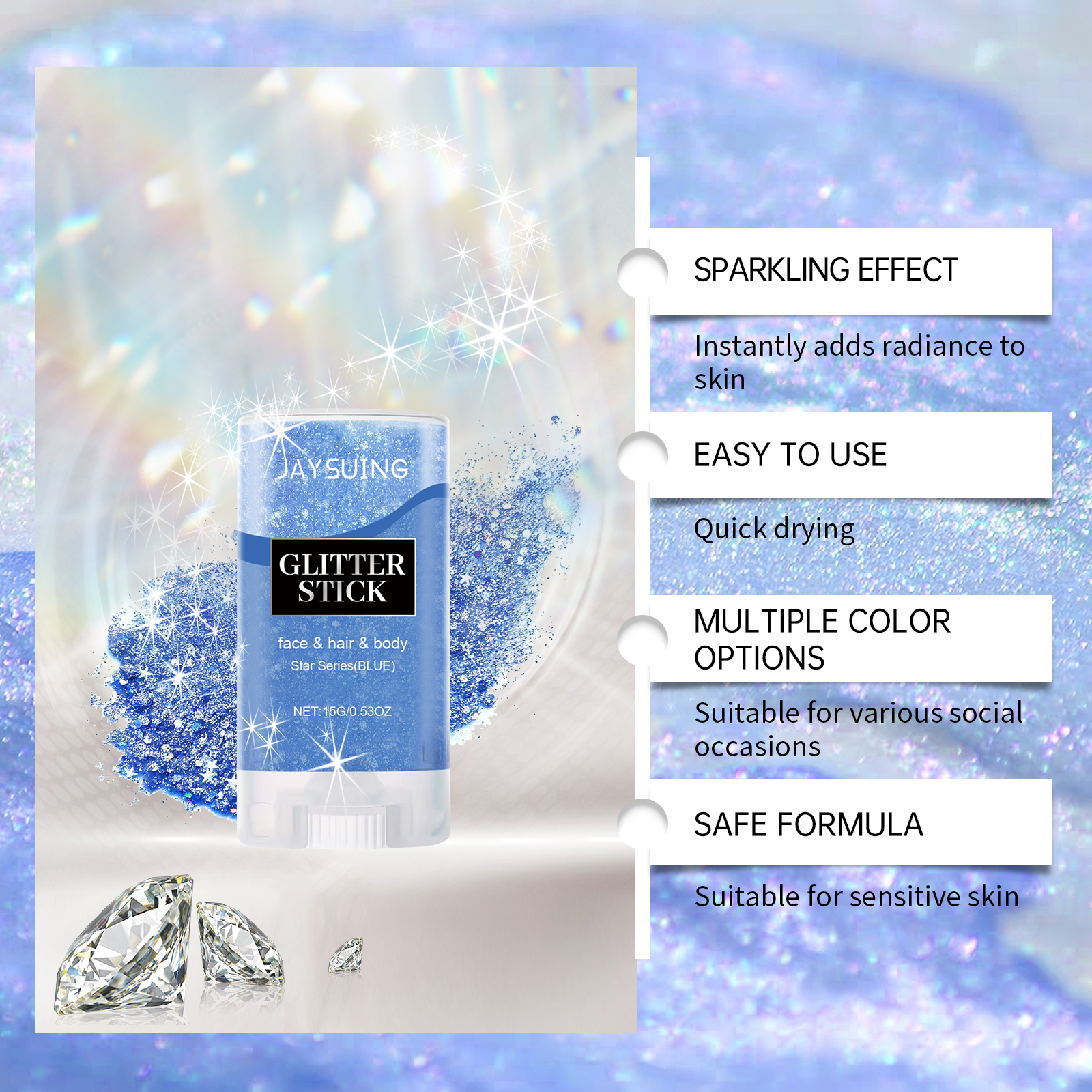 Jaysuing Sequined Glitter Stick (Blue), Party, Dance, Performance, Makeup, Face, Body, Collarbone, Highlight And Shine