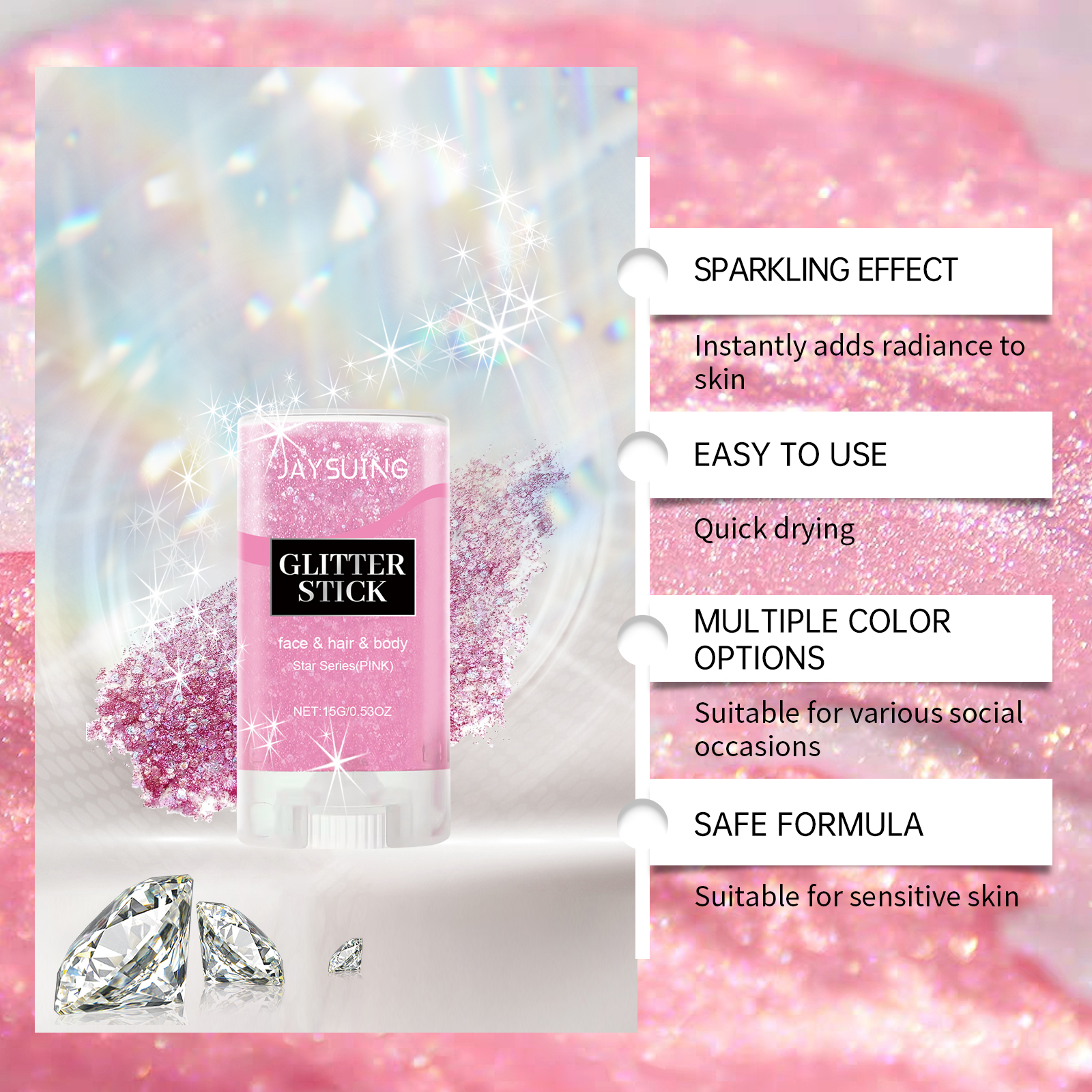 Jaysuing Sequined Glitter Stick (Pink), Party, Dance, Performance, Makeup, Face, Body, Collarbone, Highlight And Shine