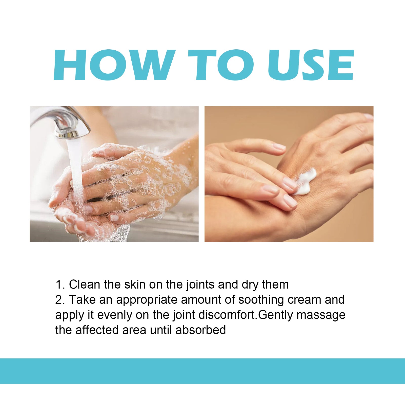 Our joint care cream contains aloe vera extract, Arnica flower extract, coconut oil. It can relieve all kinds of pain eliminate stiffness correct deformities eliminate cysts repair damaged tendons. Its application is simple: clean and dry the skin on the joints. Apply an appropriate amount of soothing cream to the joint discomfort. Gently massage the affected area until absorbed. And very good use of soothing gel for knee and all joint pain.
