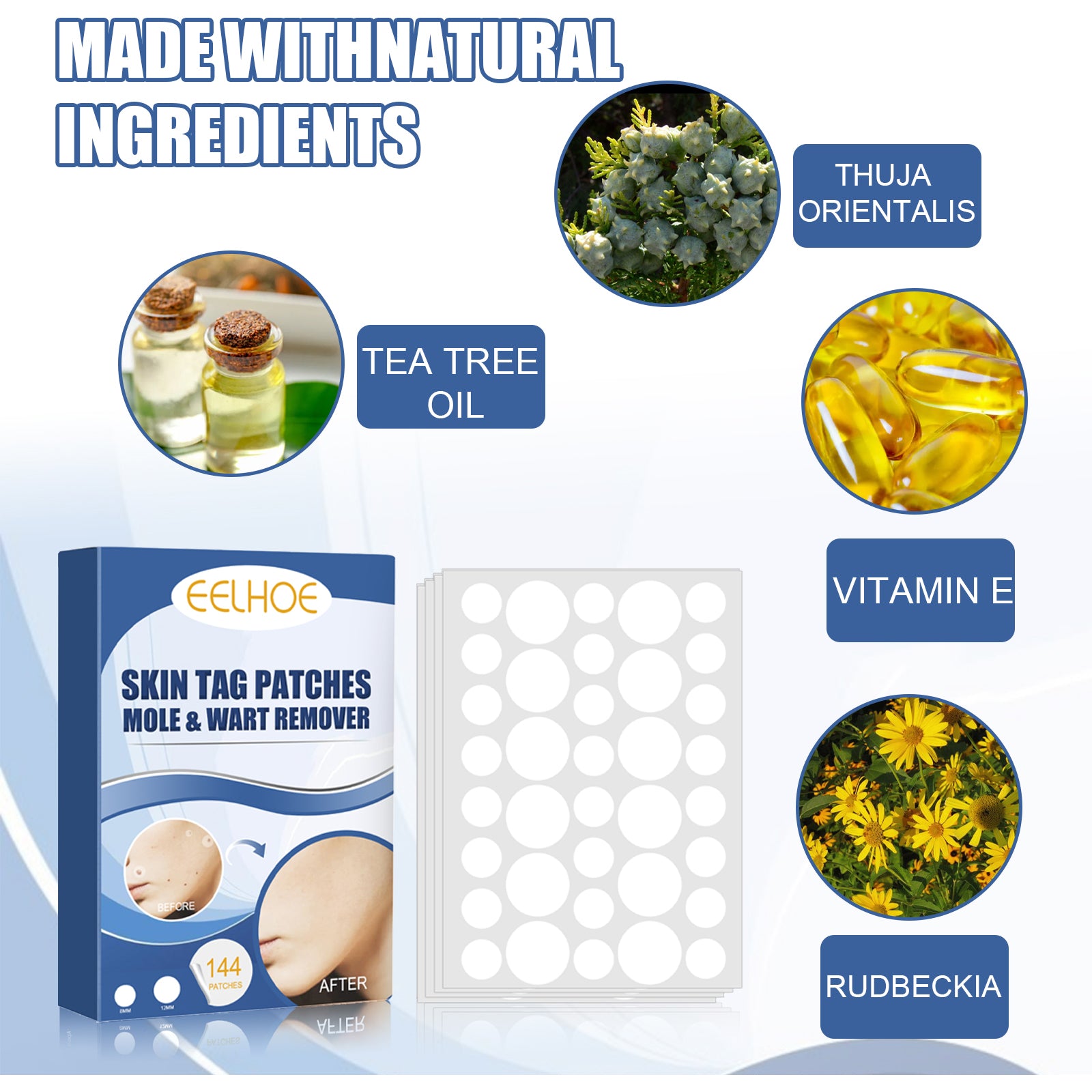 Our cloths contain Platycysts, tea tree essential oil and vitamin E. It helps to soften keratin dissolution and remove moles. Its application is simple: clean the skin tag area and dry it. Leave for a few hours or overnight. Apply a skin label to the desired area. When completely dry, replace it with a clean patch. After use, go deep into the skin to soften and remove growths.