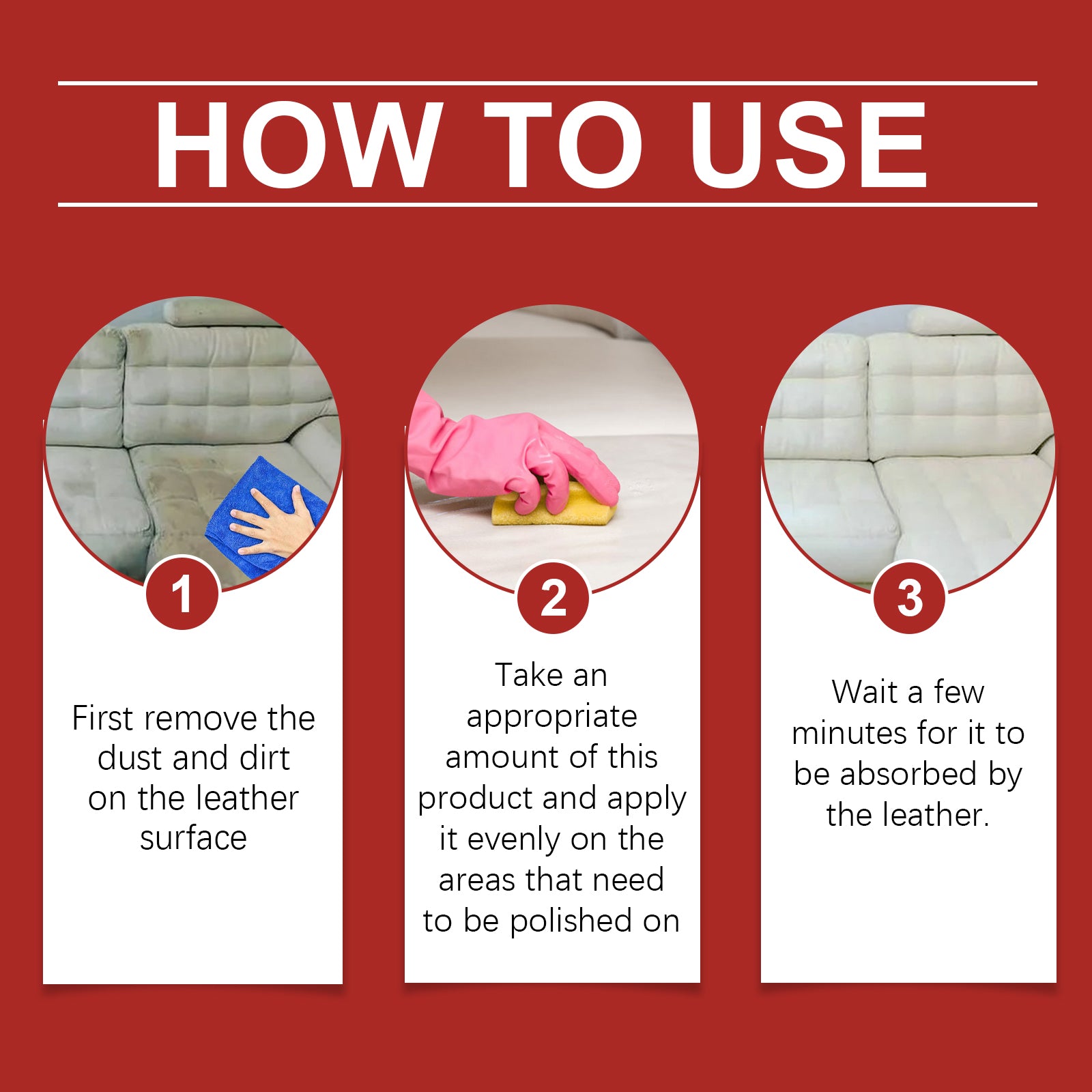 Our leather polishing cleansers contain disodium EDTA, sodium bicarbonate, lauryl polyether-7. It can deeply nourish, penetrate leather, restore leather softness, prevent drying and cracking. Its use method is very simple: 1. First remove the dust and dirt on the leather surface; 2. Apply appropriate amount of the product evenly to the parts that need to be polished; 3. Wait a few minutes for it to absorb into the leather. Quick effect, quickly restore leather luster after use, improve appearance and texture.