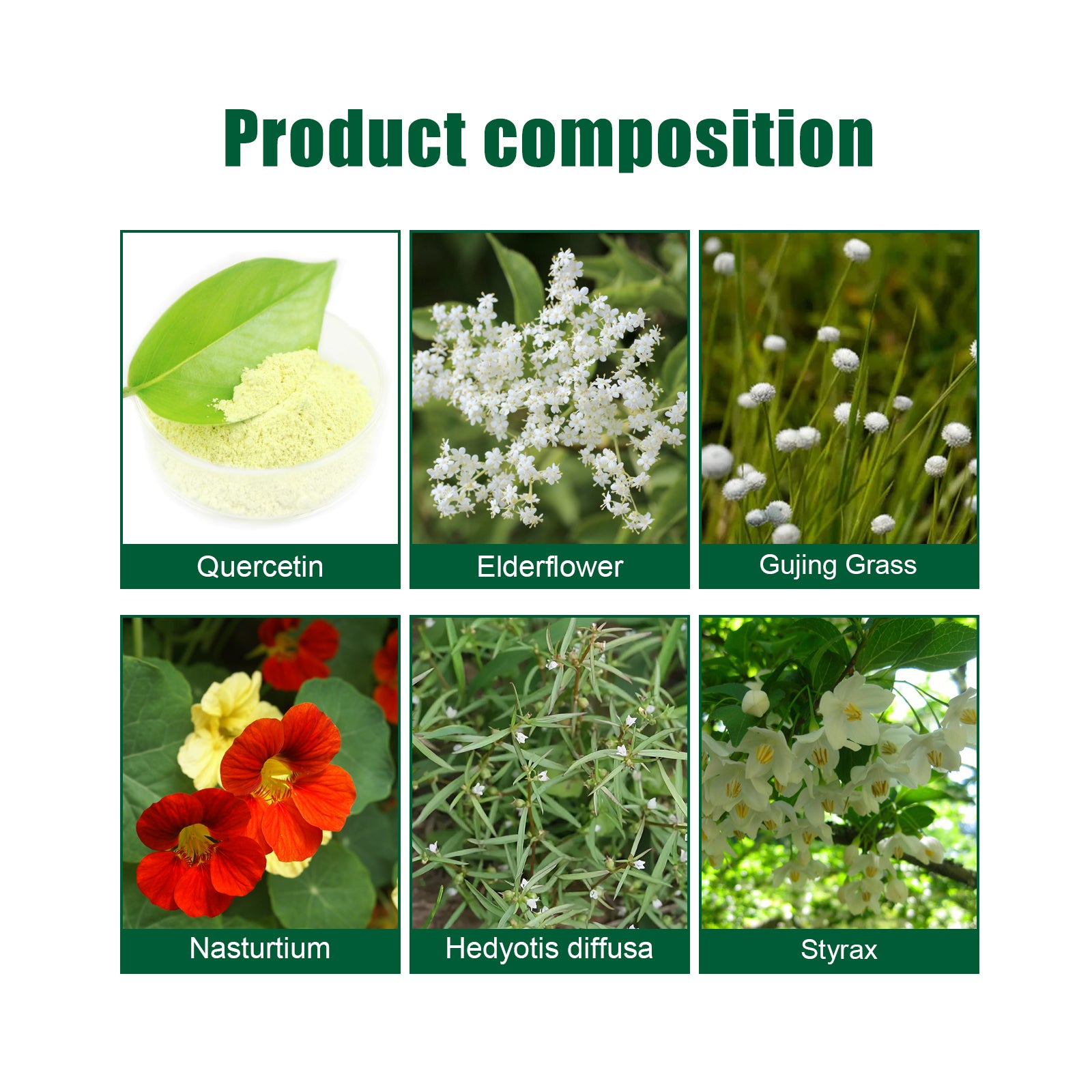 Our Lung Clearing Nasal Spray contains quercetin, elderflower, and ancient well grass. It can remove waste from the lungs, stay in the lungs for more than two hours after inhalation, dilute mucus and remove dirt, and expel sputum from the body, effectively purifying and nourishing the lungs. Its use is simple: after cleaning the nasal cavity, shake the product, remove the lid, insert the product into the nostril, inhale for a few seconds, exhale, and do the same with the other nostril. Effective treatment of chronic pharyngitis pulmonary nodules and pulmonary dysfunction, significantly alleviating respiratory allergies and asthma caused by environmental factors.
