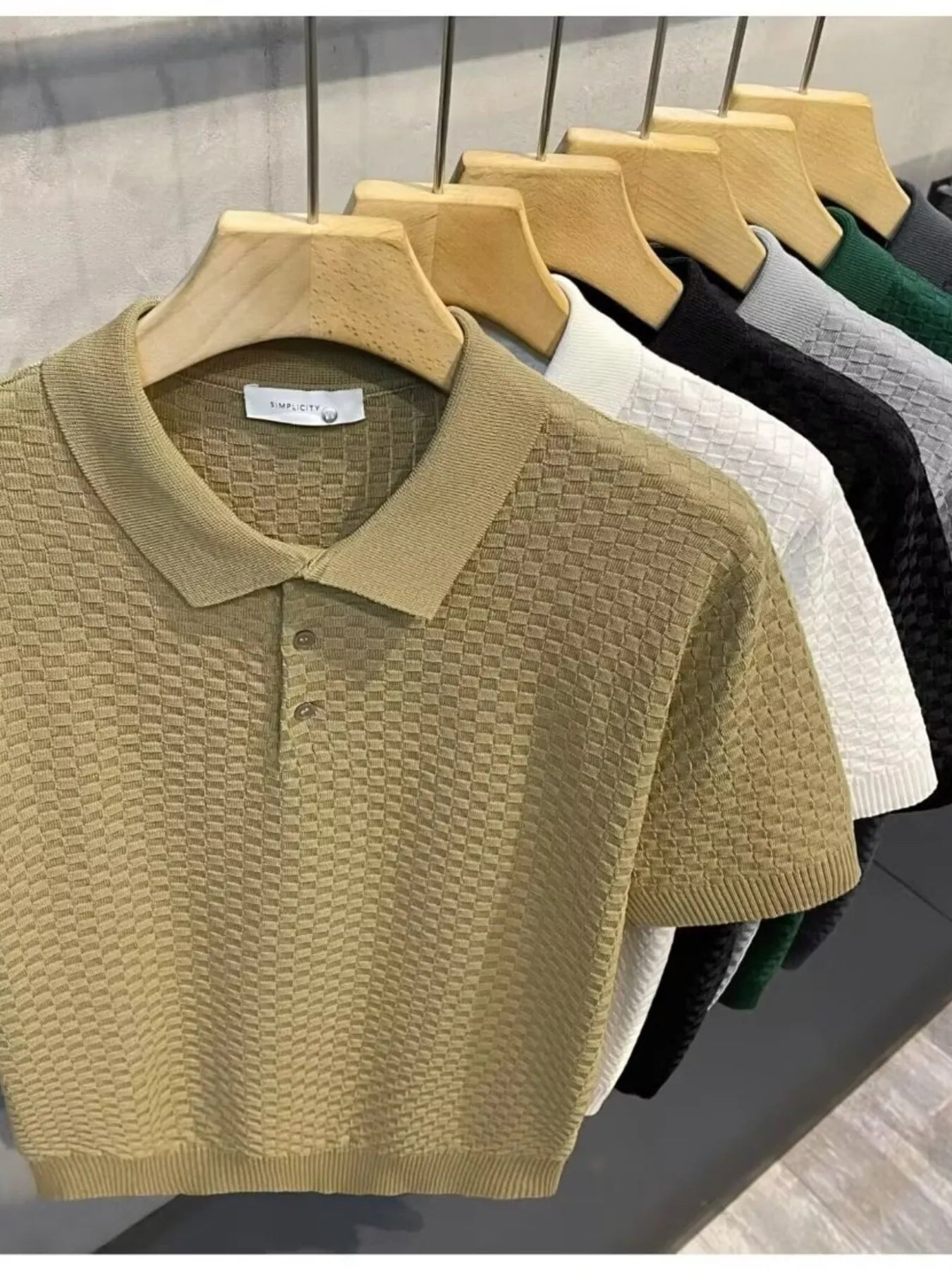 Men's Full Size Classic Textured Knit Polo Shirt Plus Size