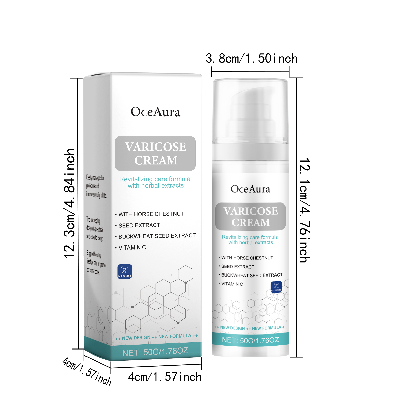 Our leg cream contains buckeye seed extract, buckwheat seed extract, ascorbic acid (vitamin C). It can moisturize for a long time to help the skin maintain the proper moisture balance. The cream is light in texture, easy to be absorbed by the skin, and has no greasy feeling. Its use is simple: 1. Clean and dry the skin. 2. Apply appropriate amount of this product evenly to the skin of leg varicose veins; 3. Gently massage until absorbed. The formula was developed specifically for sensitive skin to make it safer to use. Long-term use can improve varicose veins.