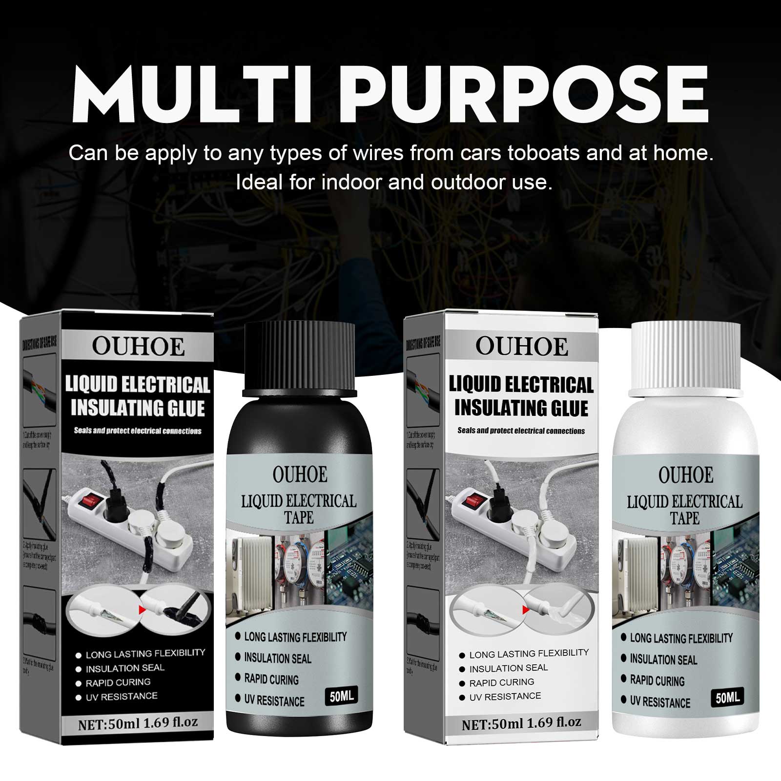 Our liquid electrical insulating adhesive (white 30ml) contains resin, fillers and curing agents. It can be durable and flexible, insulated and sealed, cured quickly and resistant to ultraviolet rays. Its usage method is very simple: Cut off the power supply and keep the surface dry. Apply glue (a small brush can be used). Wait for it to dry after application. Professionally handle your broken, split and cracked wires.